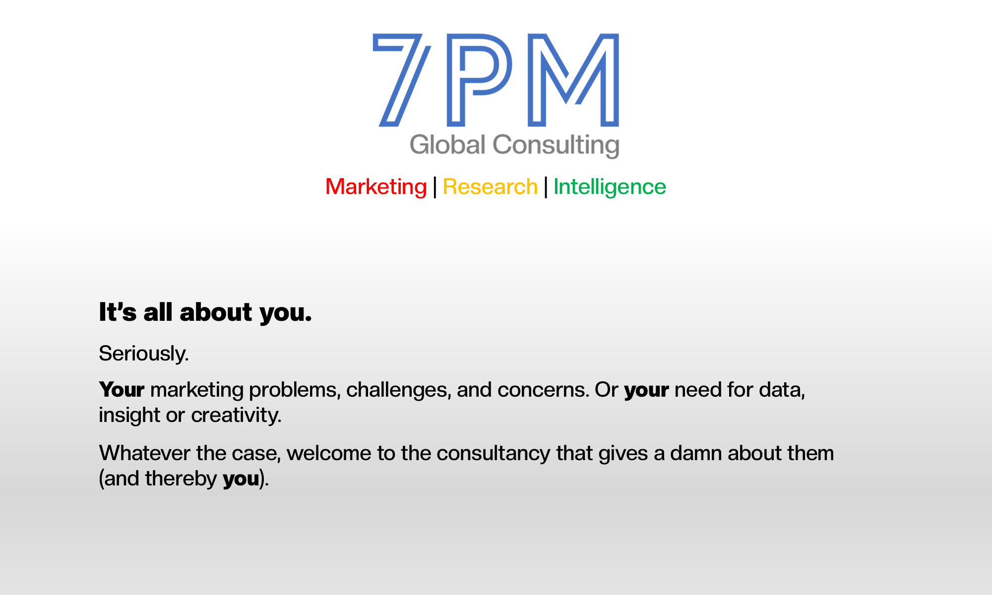 Founded by experienced – and qualified – marketer Brian Gray (yep, that’s me), 7PM focuses on providing clients with key marketing and research solutions to market research agencies, market and competitor intelligence companies, and customer-focused companies in the UK and further afield, across a variety of key industry sectors.